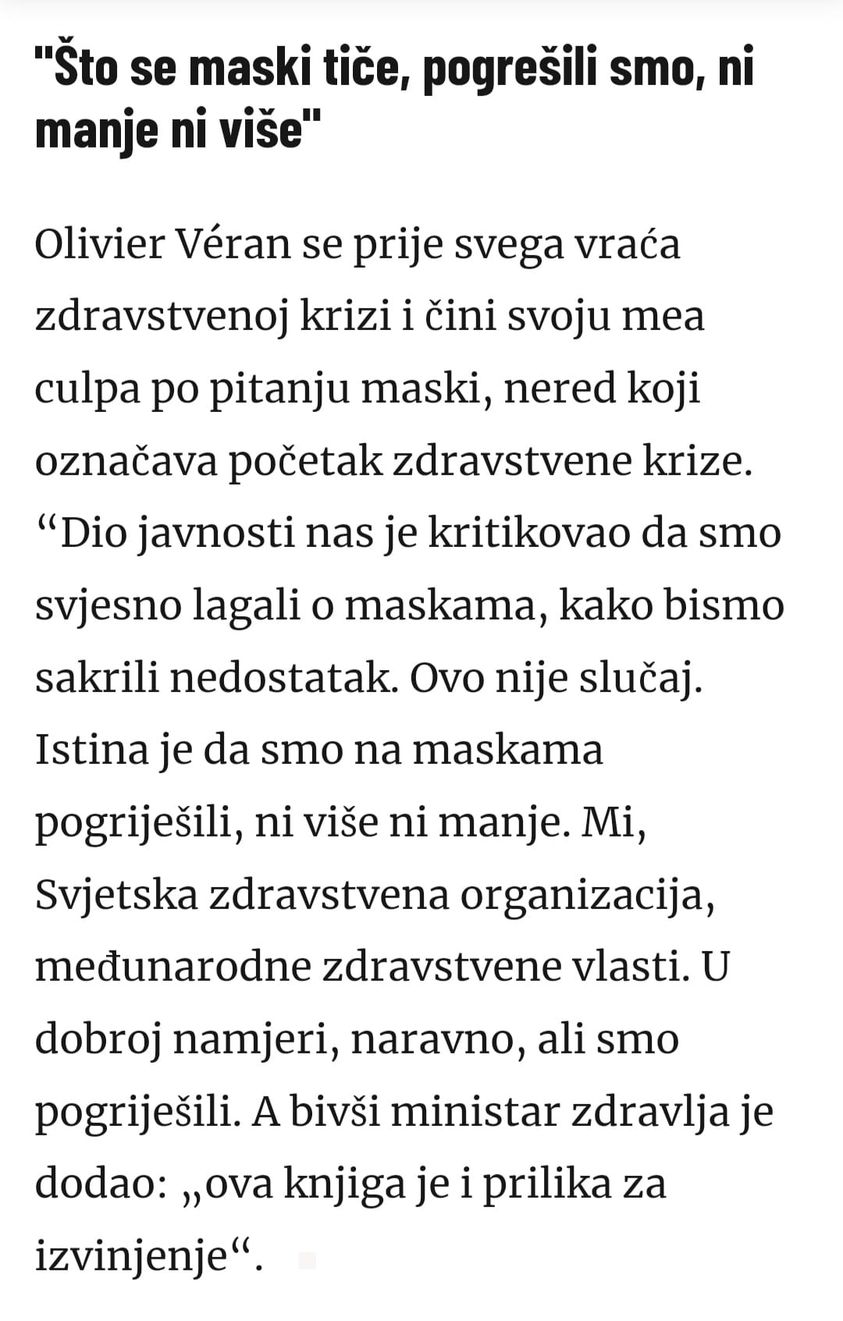 Оливије Веран, сада портпарол владе, враћа се у личној књизи здравственој кризи и њеном управљању док је био на челу Министарства здравља. Почео је да пише у марту 2020, када је објављено прво затварање у Француској повезано са пандемијом Ковид-19.