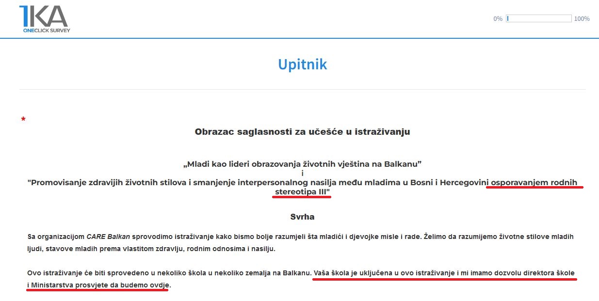 Такође, неке анкете су имале сагласност само од директора, а неке су извршене без сагласности Министарства просвјете и културе РС и директора образовне установе, као самоиницијатива просвјетног кадра. То показује да поједине особе из образовног система поступају незаконито, у интересу НВО и/или родне идеологије које промовишу и помажу. Анкете попуњене за идеолошку сврху, могу бити злоупотребљене, какав год стварни резултат попуњавања био.
