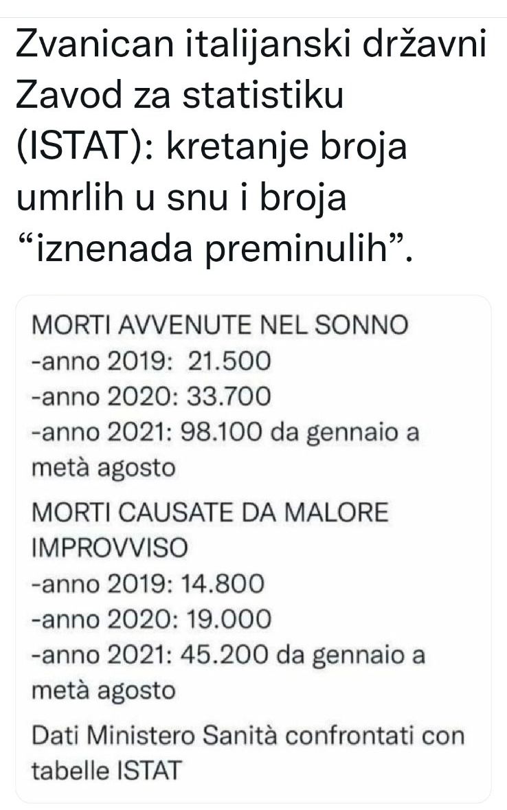 За повећање преминулих од „изненадитиса“, синдрома изненадне смрти, након проласка врхунца пандемије, већ дуже времена се појављују нека званична оправдања. Изненадне смрти, пораст вишка смртности видиљиво изнад досадашњег статистичког просјека и пораст болести се дешавају нпр. код: