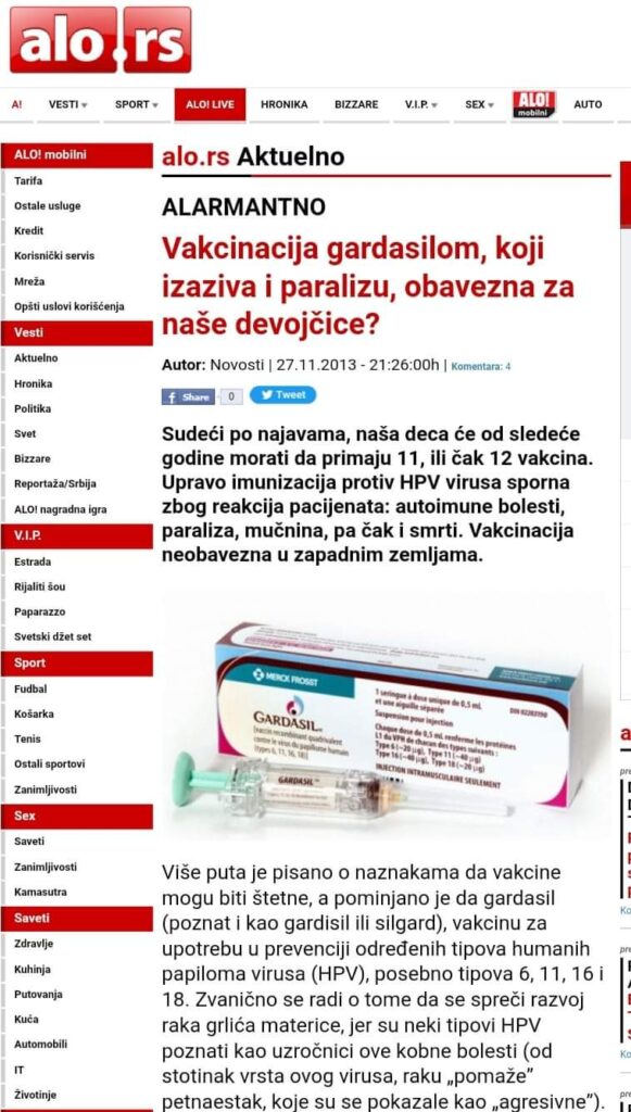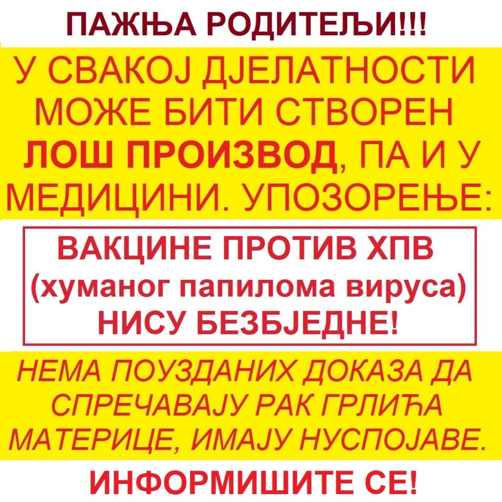 Имунизација против хуманог папилома вируса (ХПВ) – непотребна и опасна по здравље дјеце